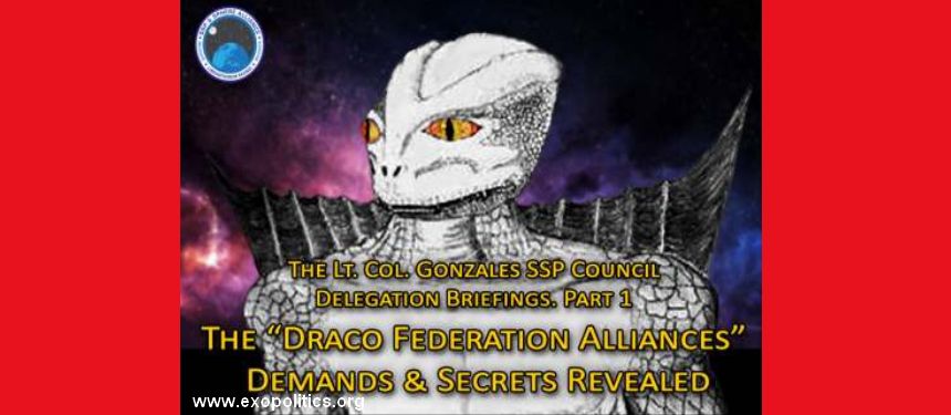Tato zpráva nebude tak podrobná, protože je založena na informacích, které mi poskytl pplk. Gonzales ze své schůzky s Aliancí drakoniánské federace (Draco Federation Alliance), s ‚předsednictvem‘ Výboru 200 a ze své první účasti na konferenci „Super-federace mimozemšťanů“, kteří se podobají lidem, kde zasedal na místě pro delegáty a ze svého setkání s Raw-Tear-Eir. Kvůli délce článku a podrobnostem v různých jeho úsecích jsem jej rozdělil do dvou částí.