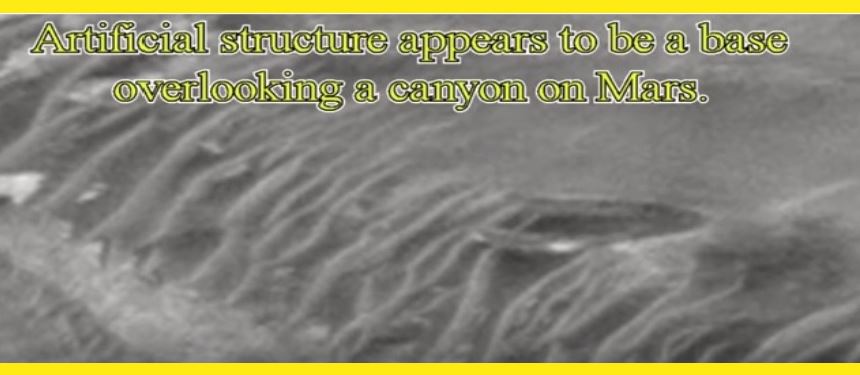 Obrázek z Mars Global Surveyor (tj. MGS – planetární sonda americké NASA – pozn. redakce) ukazuje na Marsu umělý objekt, který se zdá být základnou, a to základnou s výhledem na kaňon. Snímek byl pořízen z kamery Mars Orbiter někdy v období mezi březnem a srpnem 2000. Tento obrázek byl předmětem videa na Youtube, které bylo propuštěno do oběhu 27. března 2015, přičemž byl popsán jako vesmírná loď ve tvaru létajícího talíře. Scott Waring z UFO Sighting Daily (tj. Denní pozorování UFO) tento obrázek také studoval a dnes ve svém příspěvku tvrdil, že objekt je obřím diskem UFO. Avšak pozice tohoto umělého objektu s výhledem na kaňon nám navrhuje jako možnost další, pravděpodobnější vysvětlení: totiž že tajná pozorovatelna na Marsu patří k základně.